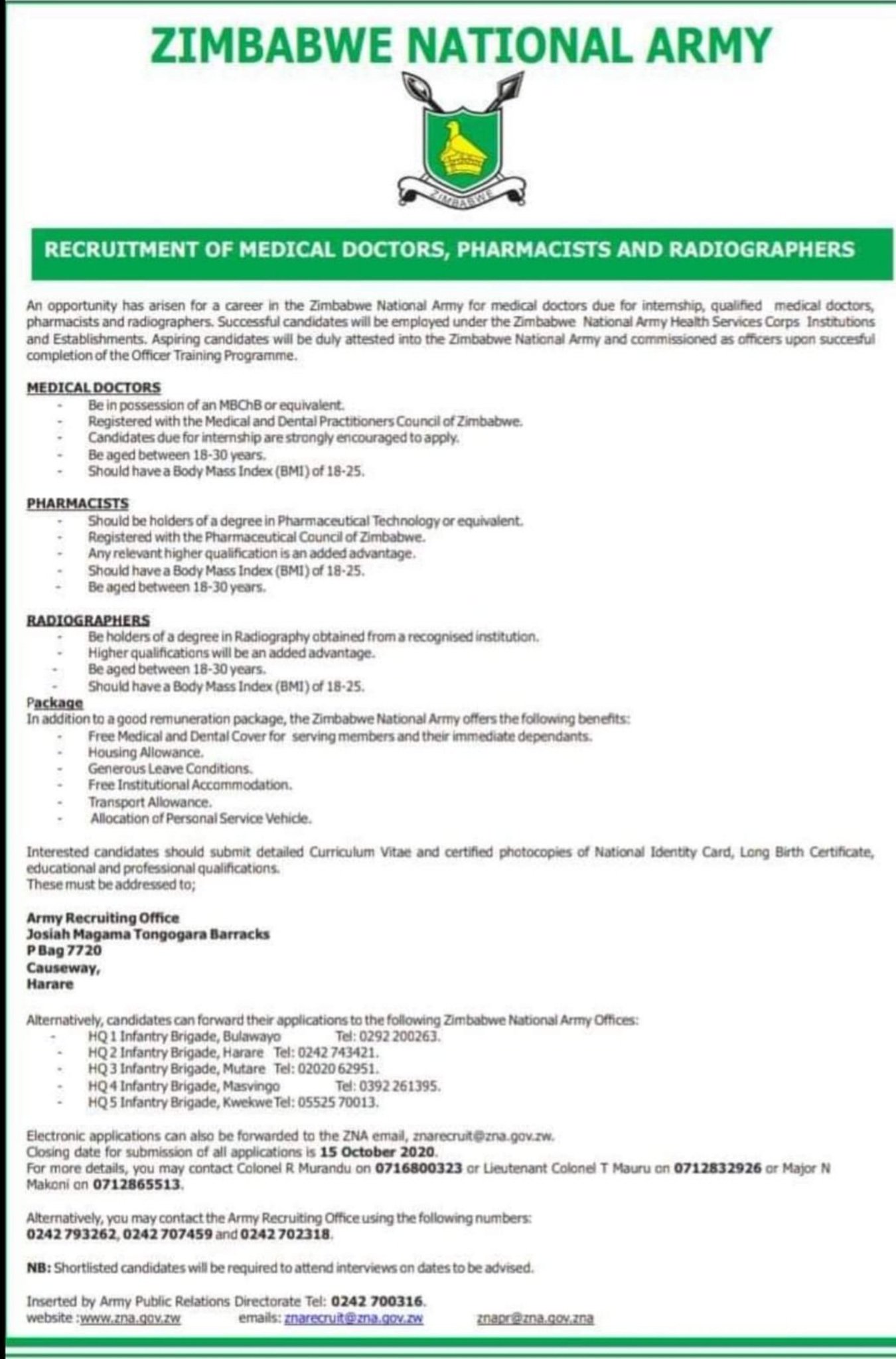 Thenewshawks Na Twitterze The Zimbabwe National Army Is Looking For Doctors Pharmacists And Radiographers At A Time When Government Is Having Big Problems With Medical Practitioners Over Salaries And Working Conditions The